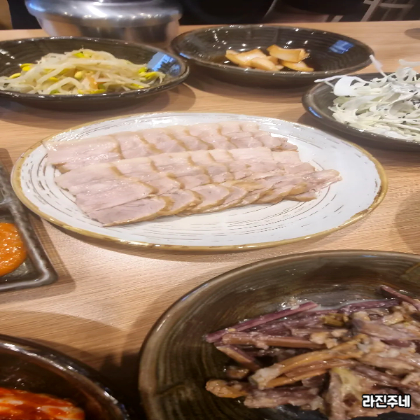 부드러움의 극치, 완벽한 보쌈 가장 먼저 손이 간 건 역시 보쌈이었어요. 한눈에 봐도 야들야들해 보이는 비주얼에 침샘이 폭발했답니다. 한 점 집어 입에 넣는 순간, "이건 미쳤다!"라는 말이 저절로 나왔어요. 잡내 없이 부드럽게 씹히는 식감과 고소한 육즙이 입안 가득 퍼지는데, 정말 예술이었어요.